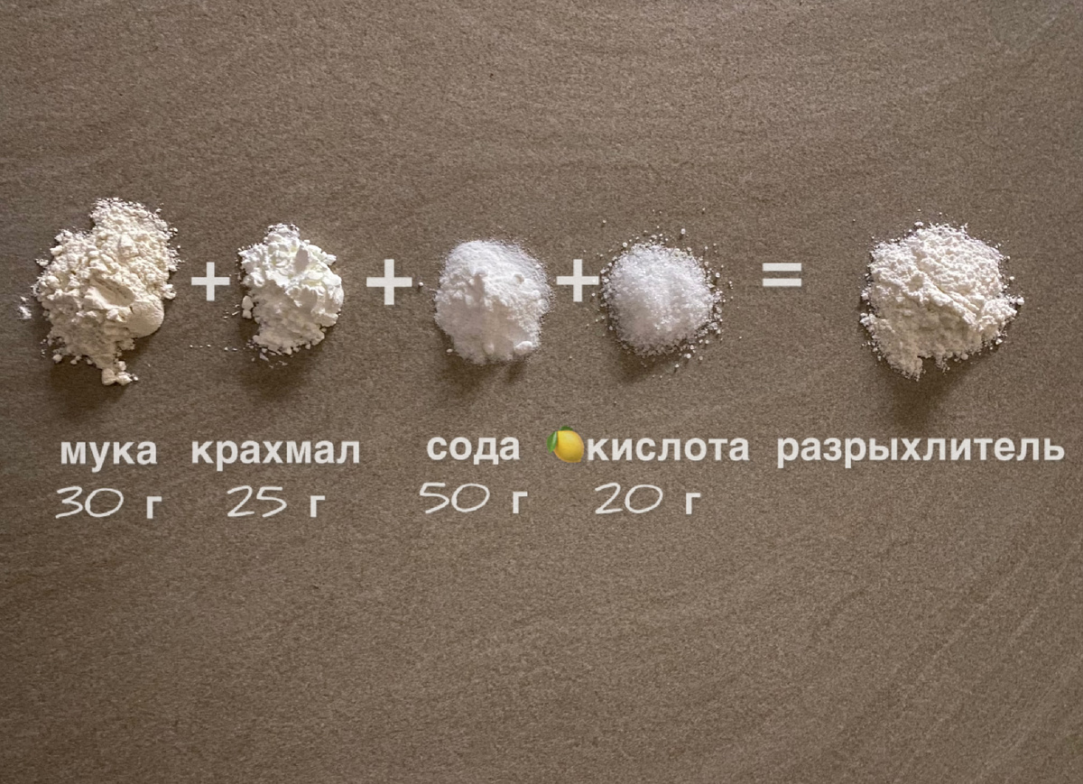 Для того, чтобы изготовить разрыхлитель, понадобятся следующие ингредиенты: