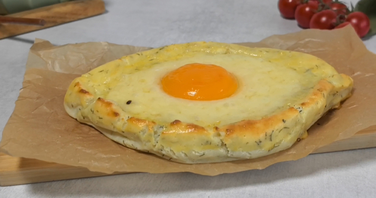 После того как хачапури зарумянится, аккуратно добавьте целый желток в центр, и верните его в духовку на пару минут. Ваша кулинарная фантазия готова к подаче!