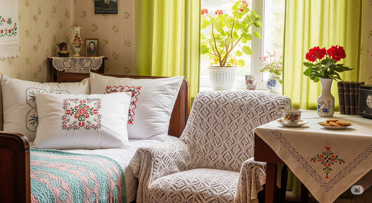 Чтобы создать атмосферу тепла, бабушки всегда использовали текстиль. Занавески, пледы и подушки — каждая деталь создает уютное пространство. Эти мягкие элементы не только визуально украшают интерьер, но и температуру в комнате делают более комфортной. Не обязательно обновлять весь текстиль; достаточно добавить что-то любимое: старый плед или вязаную накидку на стул. Даже небольшие штрихи, как самодельные наволочки из остатков ткани, наполнят дом душевной теплотой.