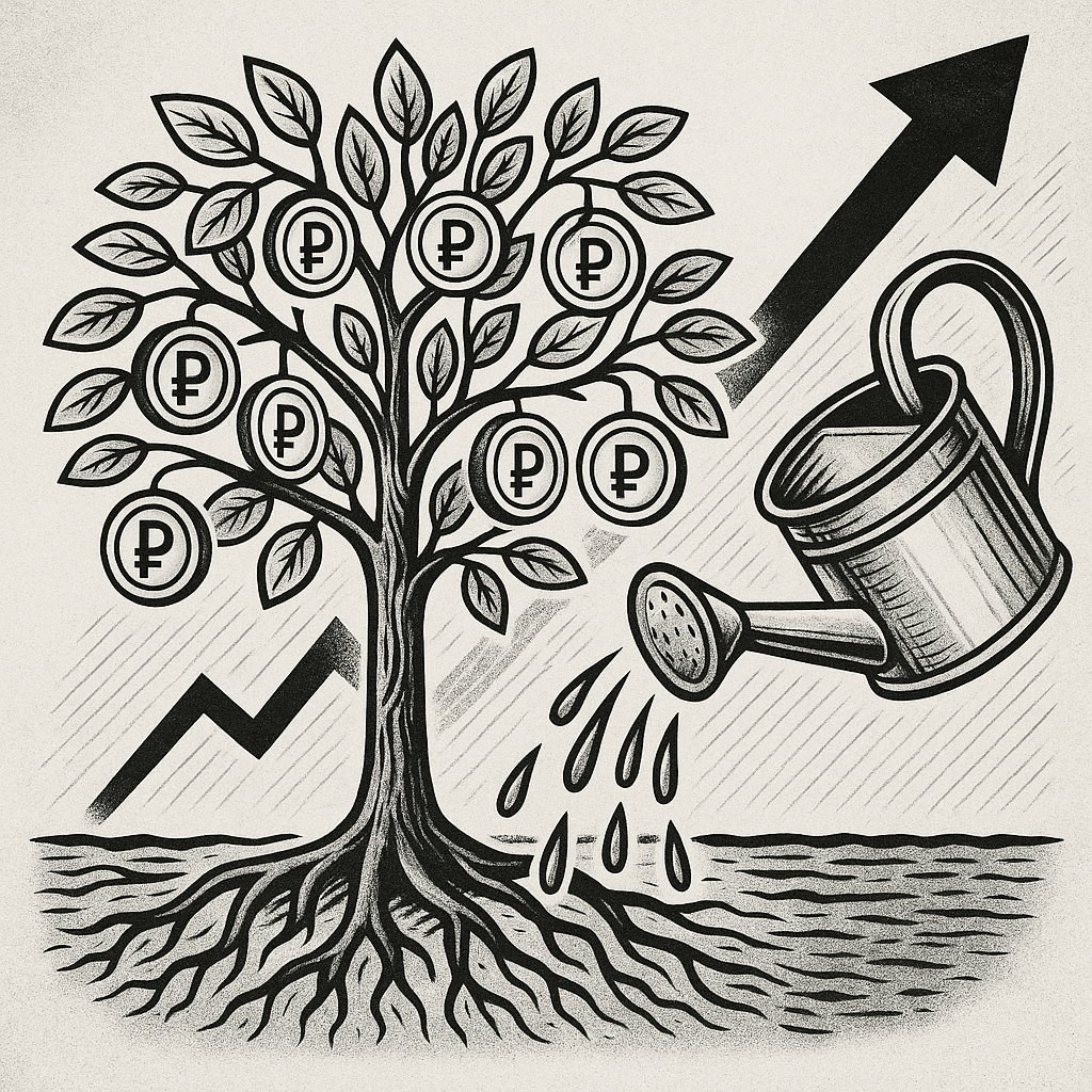 Стратегия долгосрочного инвестирования в дивидендные акции имеет свои преимущества. Например, при покупке акций с доходностью 13% и реинвестировании дивидендов, через 10 лет доходность может вырасти до 24-28%, а капитал — почти удвоиться. Это создает устойчивый денежный поток, сопоставимый с арендным доходом от недвижимого имущества, но без налоговых потерь и других хлопот.