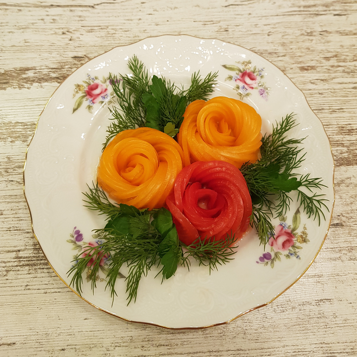 Красивые розы из помидоров не только радуют глаз, но и добавляют праздничное настроение на стол. С их помощью любое блюдо приобретает атмосферу торжества и тепла, делая время общения с близкими ещё более запоминающимся.