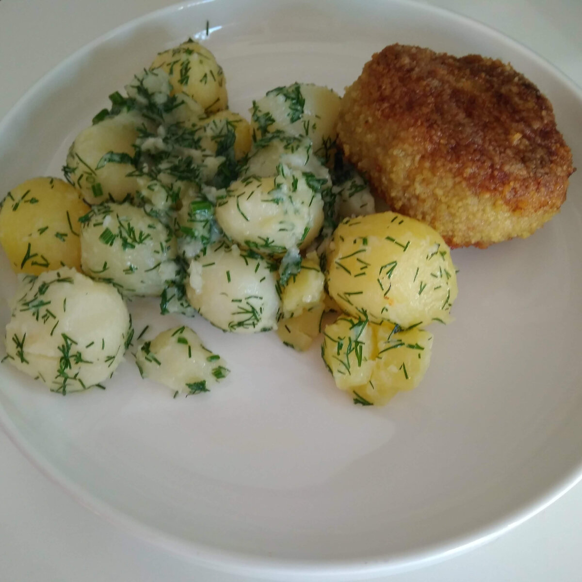 3. Когда картошка достигнет нужной степени готовности, слить воду и как можно быстрее добавить к ней сливочное масло и укроп. Закрыть кастрюлю крышкой и аккуратно встряхнуть ее несколько раз, чтобы масло равномерно распределилось.