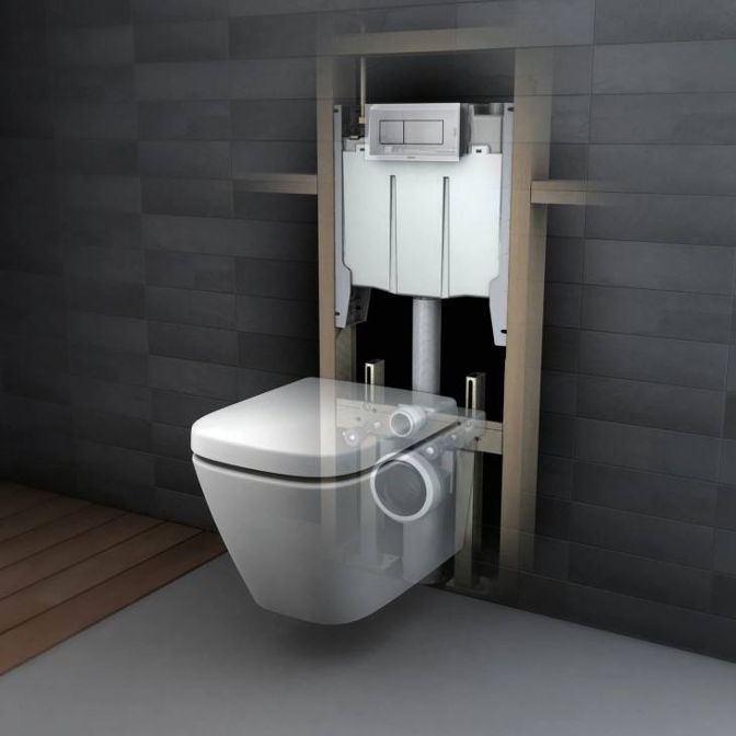 Рамная инсталляция — это более прочный и долговечный выбор. У нее усиленный каркас, сделанный из нержавеющей стали, что позволяет выдерживать значительные нагрузки — до 400 кг. В отличие от навесных, они крепятся не только к стене, но и к полу, благодаря чему распределяют нагрузку более равномерно.