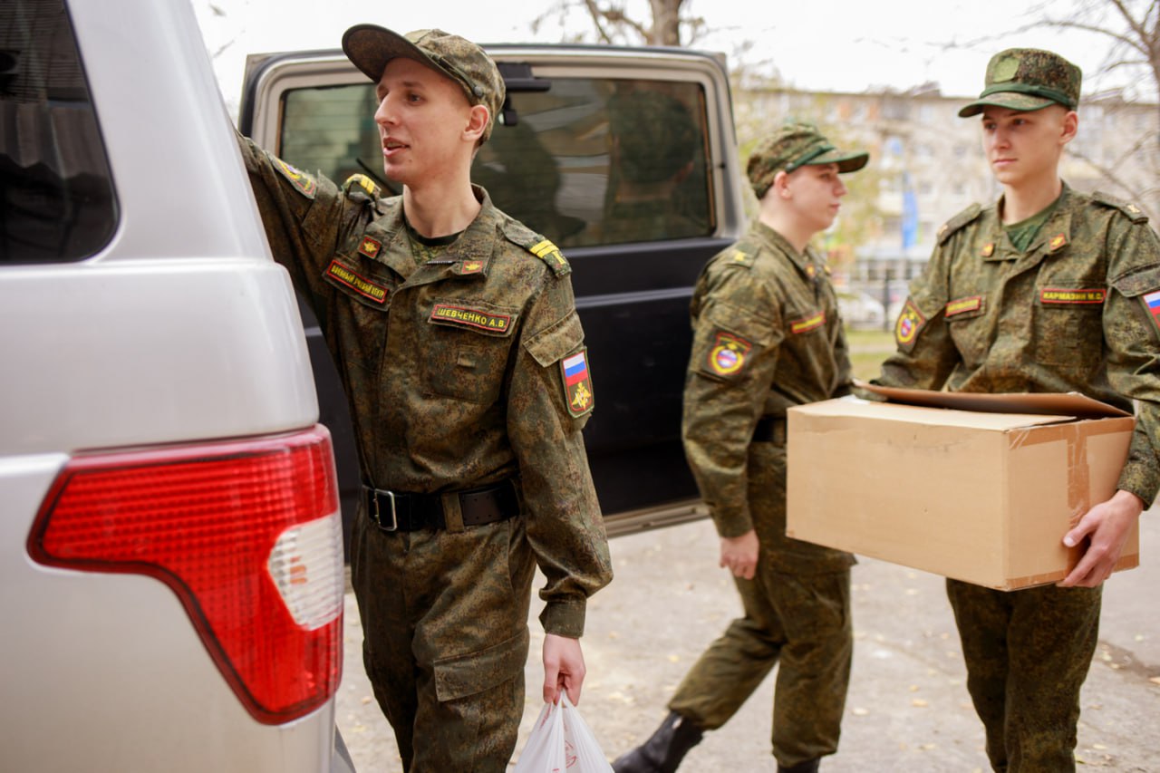 В Комсомольском-на-Амуре государственном университете установлены «Ящики добра» для сбора помощи военнослужащим. Каждый день студенты и сотрудники приносят полезные вещи, а курсанты военного учебного центра сортируют и упаковывают их для отправки.