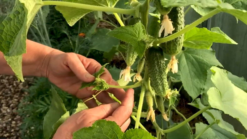 - Для пчелоопыляемых сортов оставлять три боковых побега, а для партенокарпических сосредоточиться на нижних узлах и контролировать их рост.