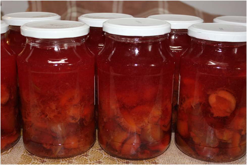 Важно помнить: лимонную кислоту добавлять в этот рецепт не нужно, компот сохранится в домашних условиях надолго, проверено многими. Если используются банки меньшего объема, то количество сахара следует уменьшить пропорционально.