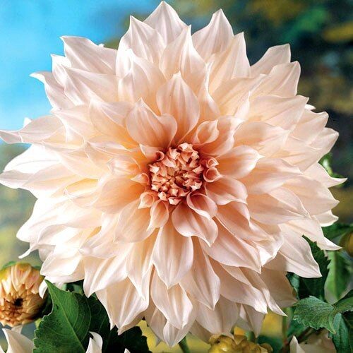 - Георгина Кафе О Лей: Нежный кремовый с розоватым оттенком сорт с крупными махровыми цветами—ваш идеальный выбор для вишенки на торте вашего цветника.