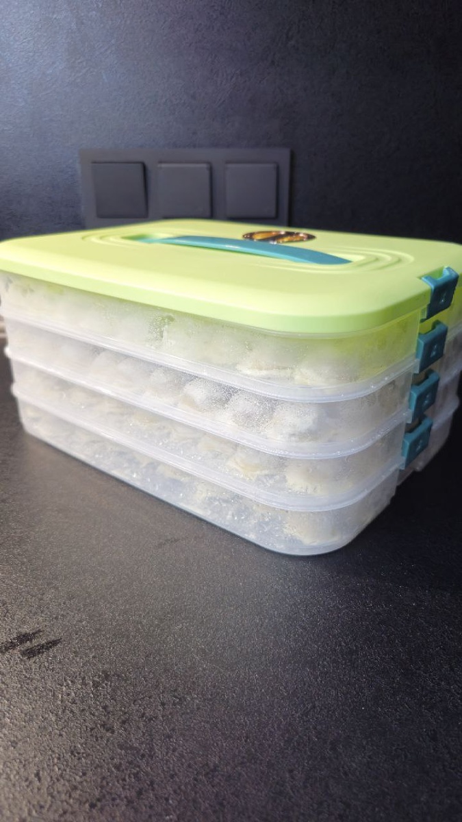Контейнер идеально подходит для заморозки домашних блюд, и в особенности — пельменей и вареников. Инженеры продумали его дизайн так, что его легко укладывать друг на друга, что позволяет экономить место в морозильной камере. Несмотря на свою компактность, он удивительно вместителен, и в нем можно замораживать разнообразные продукты.