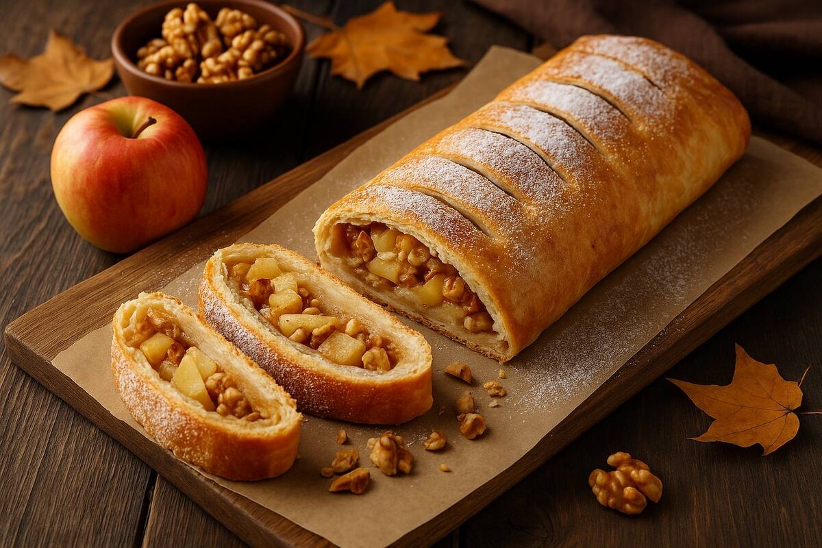 На уютном осеннем вечере, когда за окном кружащиеся листья, вся семья собирается, чтобы создать нечто особенное. Папа отвечает за замес теста, мама — за резку яблок, а дети щедро добавляют орехи и все время требуют немного начинки на пробу. Результат — идеальный штрудель: хрустящий снаружи и нежный изнутри, с духмяным ароматом, который вызывает воспоминания о золотой осени.