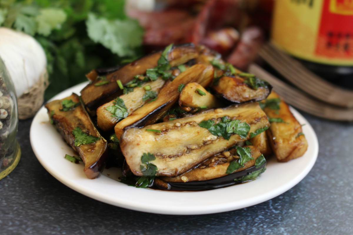Параллельно следует мелко порубить кинзу, а чеснок продавить через пресс, чтобы раскрылся его аромат. После того как баклажаны будут готовы, необходимо переложить их в подходящую посуду, добавить приготовленную заправку, соевый соус, оставшееся масло и яблочный уксус. Все ингредиенты тщательно перемешать, пробуя на вкус и регулируя при необходимости.