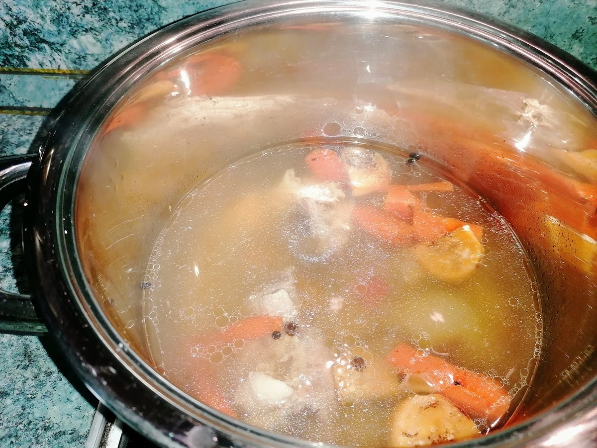 После первого закипания воду желательно слить и промыть кости. Затем к ним добавляют свежую воду и варят на самом низком огне. Важно на протяжении всего процесса следить за состоянием бульона, добавляя специи — душистый перец и гвоздику — за 20-30 минут до окончания приготовления.