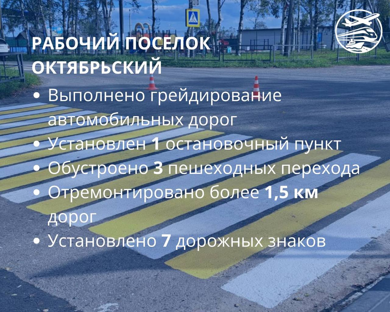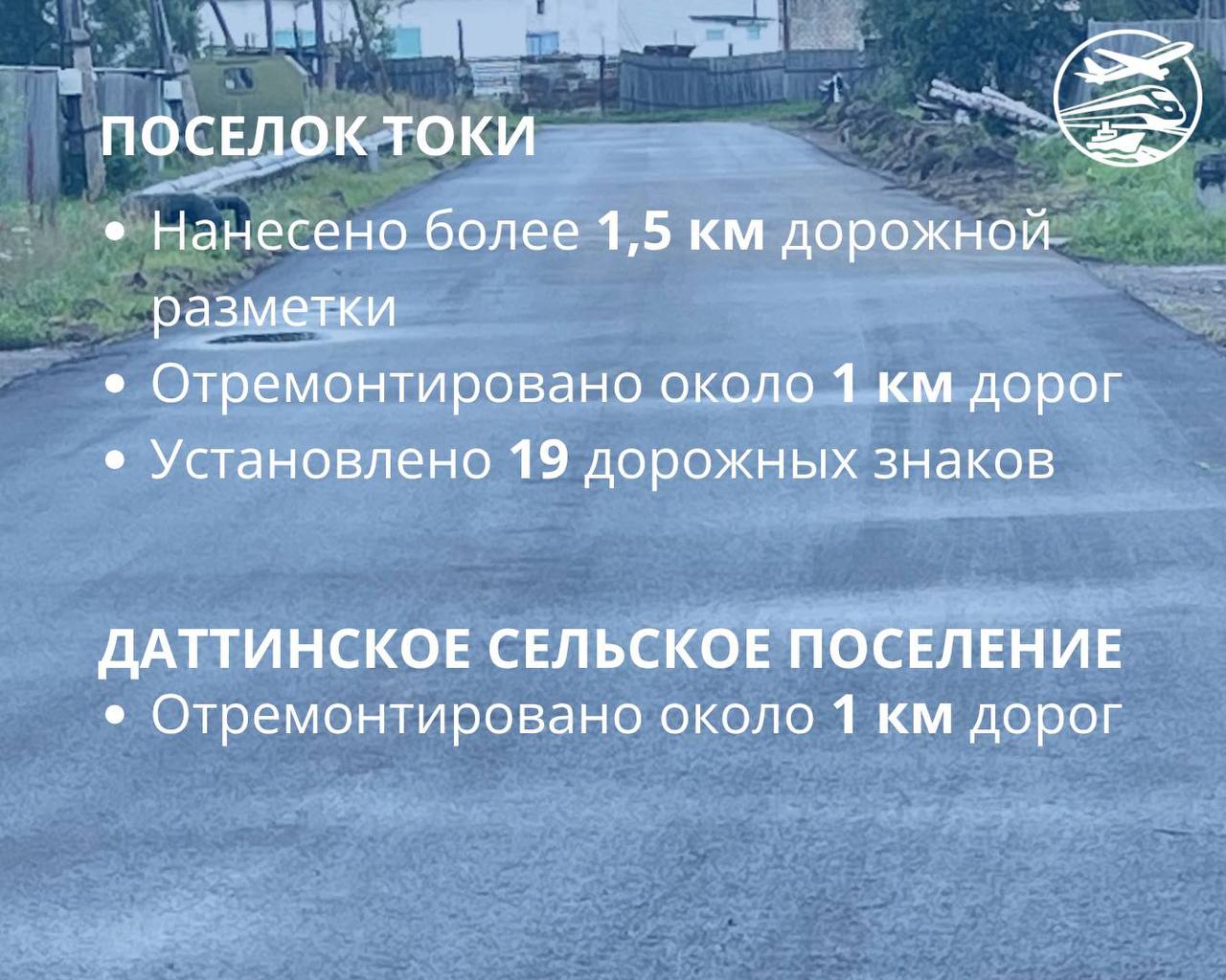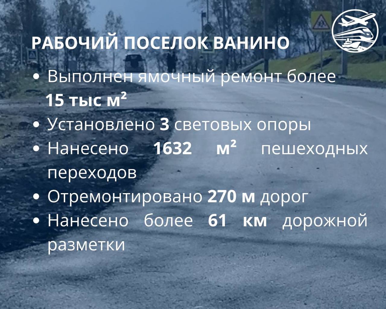 На региональных дорогах Ванинского района отремонтировано около 4 км дорожного покрытия. Нанесено свыше 15 км новой дорожной разметки, установлены дорожные знаки.