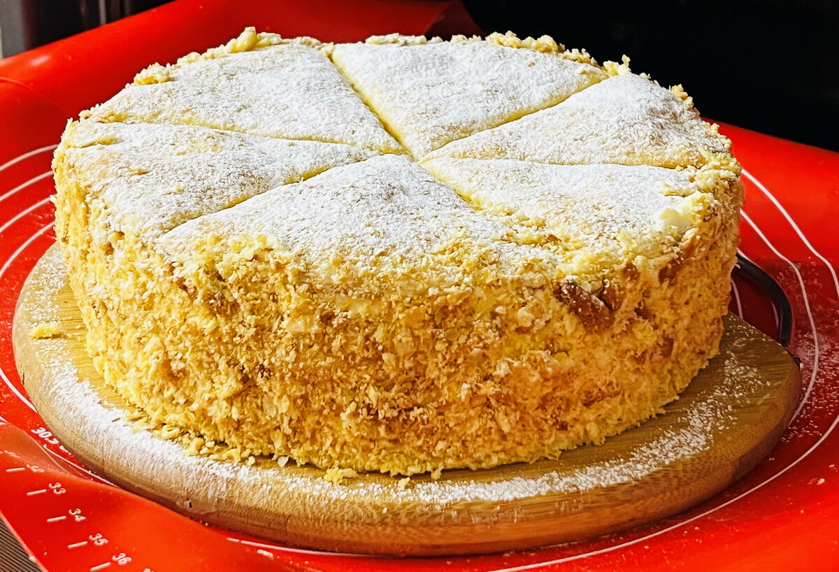 Торт Наполеон готов! Он станет настоящей жемчужиной вашего стола, радуя гостей своим великолепным вкусом и оригинальностью.