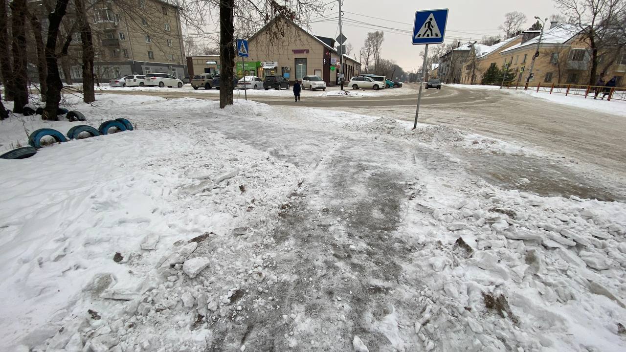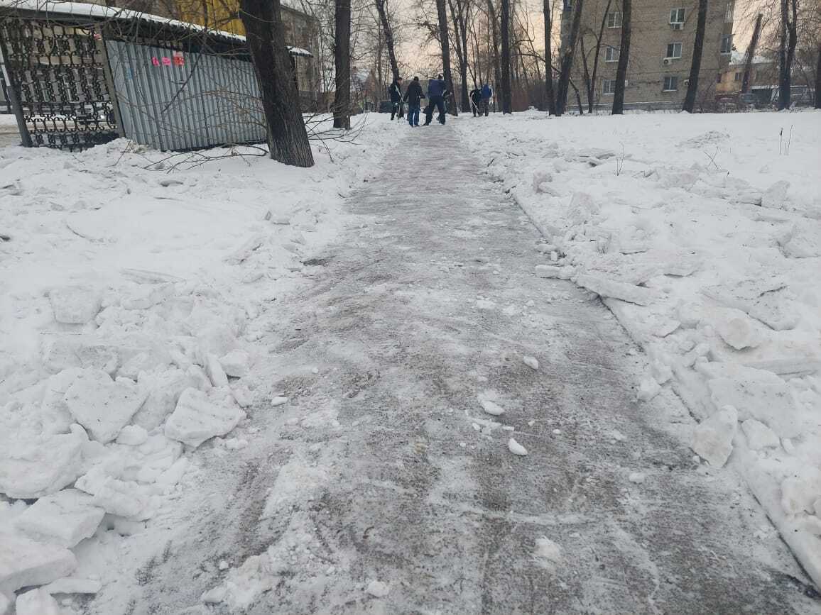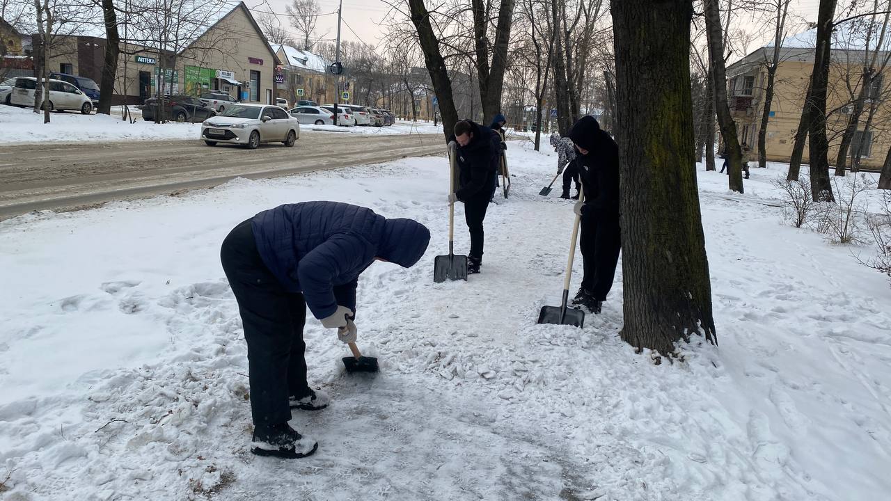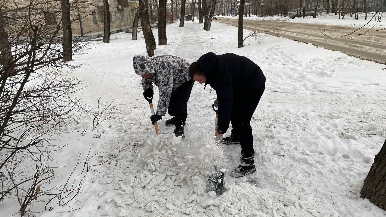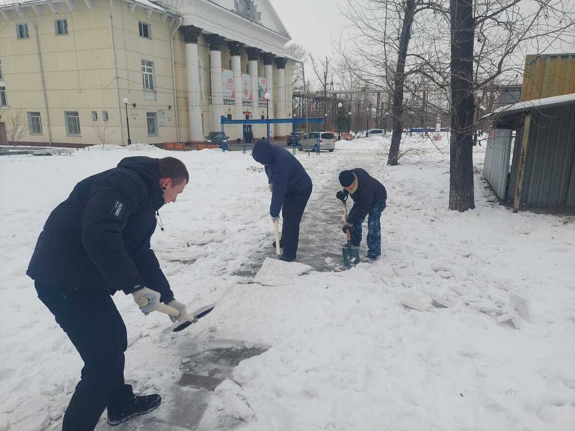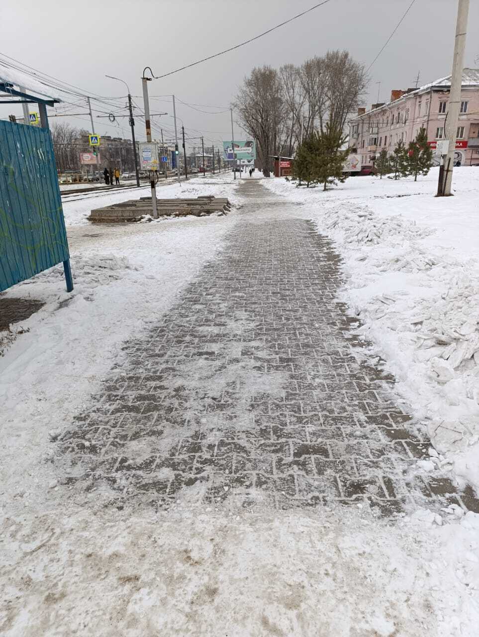 Силами комитета по управлению районом организованны работы по очистке пешеходных связей от снега: