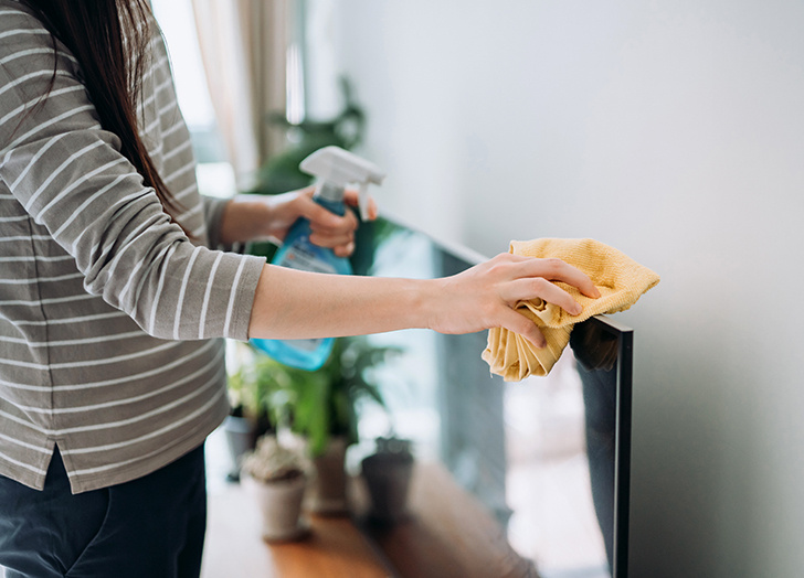 - Электроника. Современные техника и гаджеты—это величайшие чудеса инженерии, но они абсолютно не терпят прямого контакта с водой. Протирайте экраны и панели легкой влажной тканью и тщательно следите за тем, чтобы вода не попала внутрь устройства.
