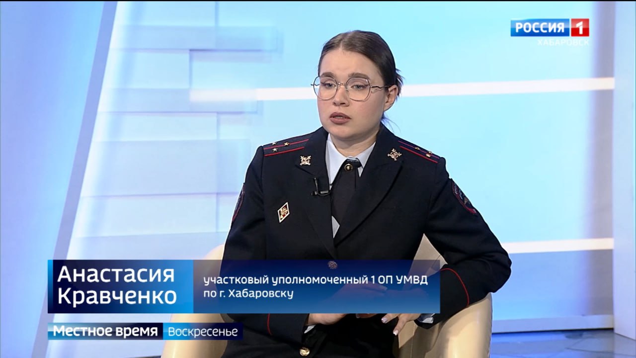 Гость студии – участковый уполномоченный 1 ОП УМВД по г. Хабаровску Анастасия Кравченко.