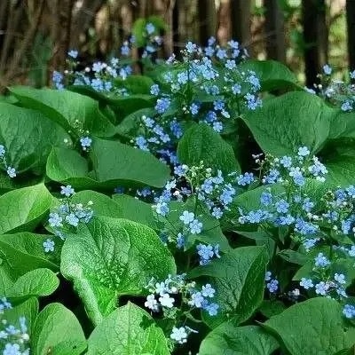 - Бруннера: Чарующие голубые цветы на фоне крупных листьев делают это растение идеальным спутником для тенистых мест.