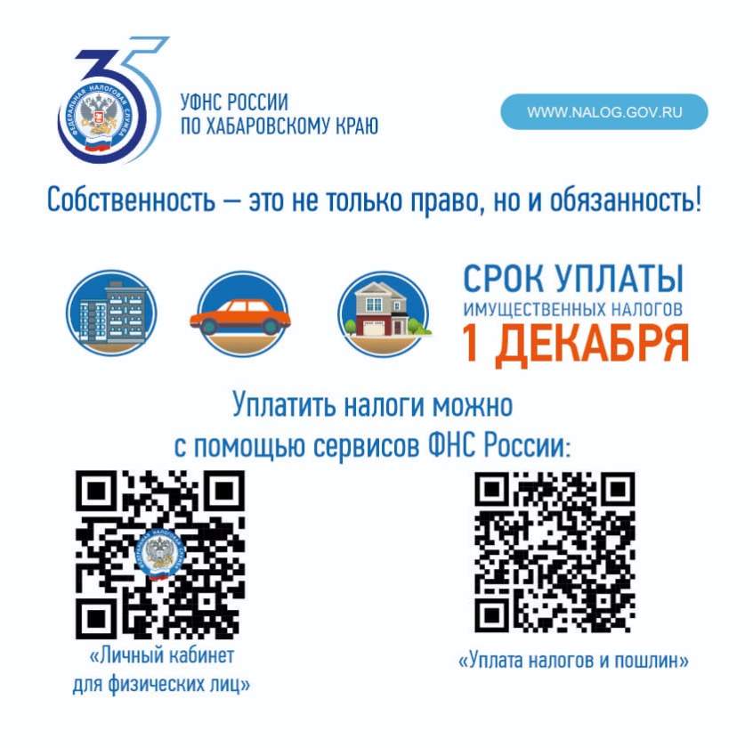 Убедительная просьба, чтобы не допустить задолженности, своевременно произвести уплату данных налогов. Если вы не получили налоговое уведомление, необходимо обратиться в налоговую инспекцию или МФЦ. Пользователи «Личного кабинета налогоплательщика» могут проверить свои начисления и оплатить налоги онлайн.