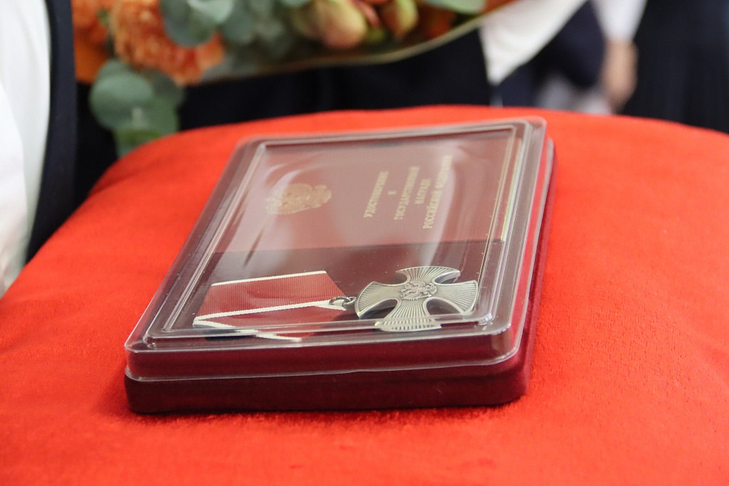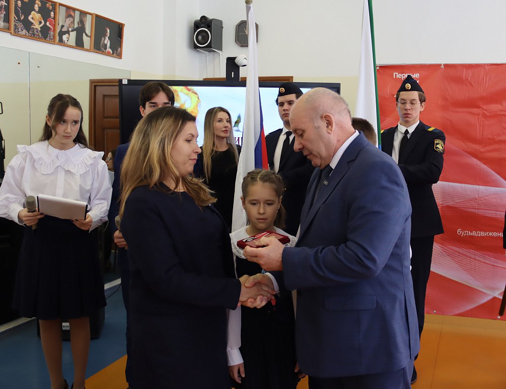 Вручил Орден Мужества семье погибшего участника СВО Леонида Токмакова. Событие состоялось в школе № 15 имени Пяти Героев Советского Союза, где когда-то учился Леонид Олегович Токмаков, ныне посещаемой его детьми.