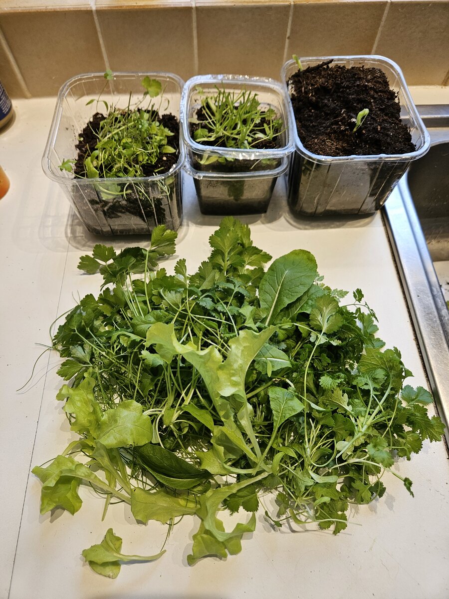 В начале года на подоконнике в неотапливаемом помещении были посеяны различные зелёные культуры. Несмотря на то, что температура в комнате не опускалась ниже +15°C, растения росли без дополнительного освещения и подогрева. Используя землю из местной группы "Отдам даром" и контейнеры из-под продуктов, удалось вырастить салат, лук, укроп, кервель и смесь пряных трав, пишет Дзен-канал "7 дач".