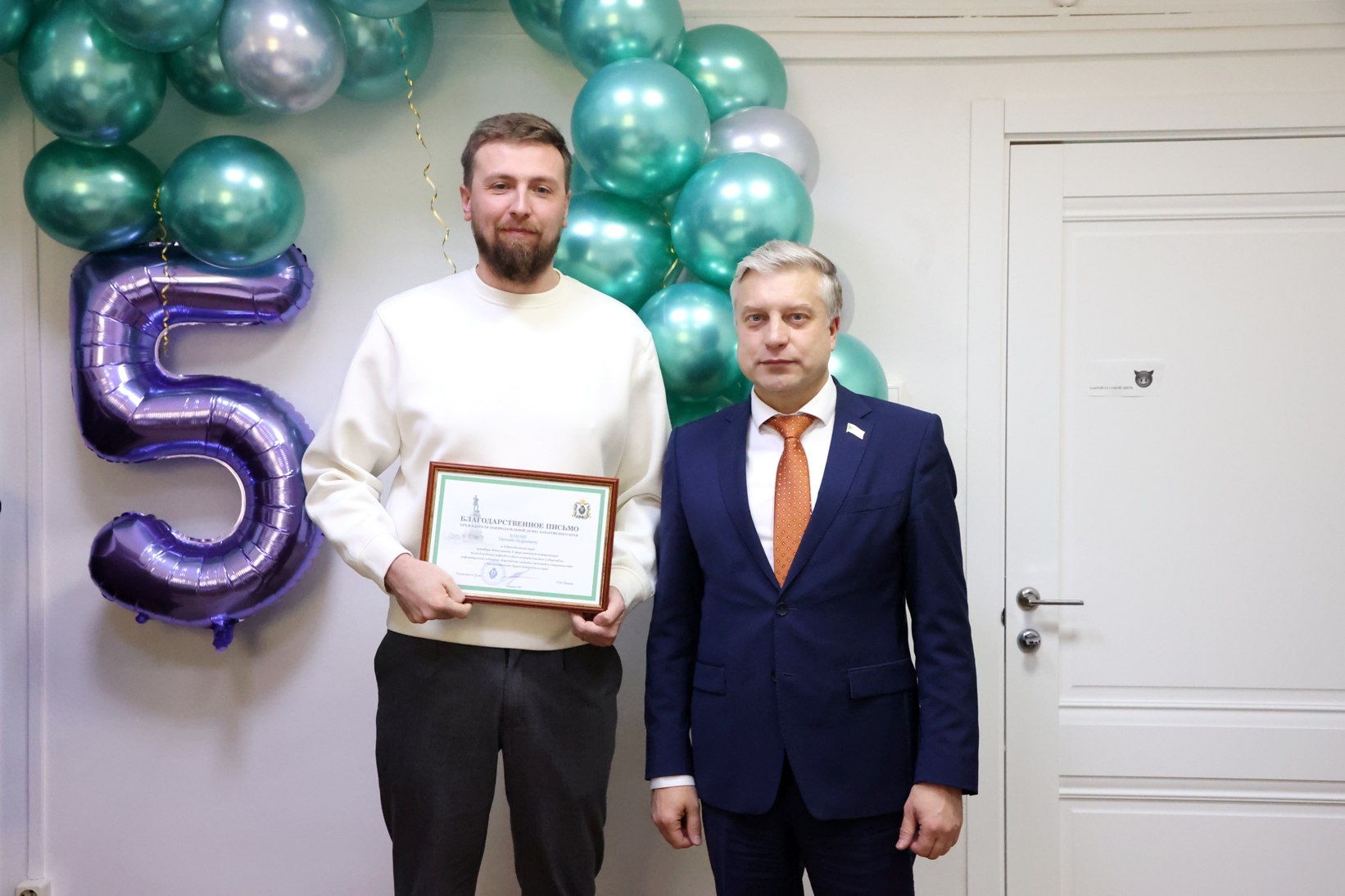 Николай Шевцов вручил благодарственные письма руководителю Ирине Онищук и видеографу Евгению Власову, пожелал всему коллективу профессиональных успехов.