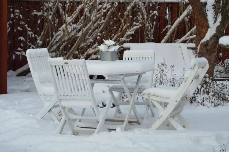 Качественная уборка уличной мебели. Перед заморозками стоит позаботиться о состояниях уличной мебели. Ее следует тщательно очистить от загрязнений и, если есть возможность, убрать на хранение в сарай или гараж. Если это невозможно, используйте влагонепроницаемые чехлы, чтобы защитить мебель от зимней сырости. Также не забудьте уберечь полы от коррозии, вызванной сменой температур.