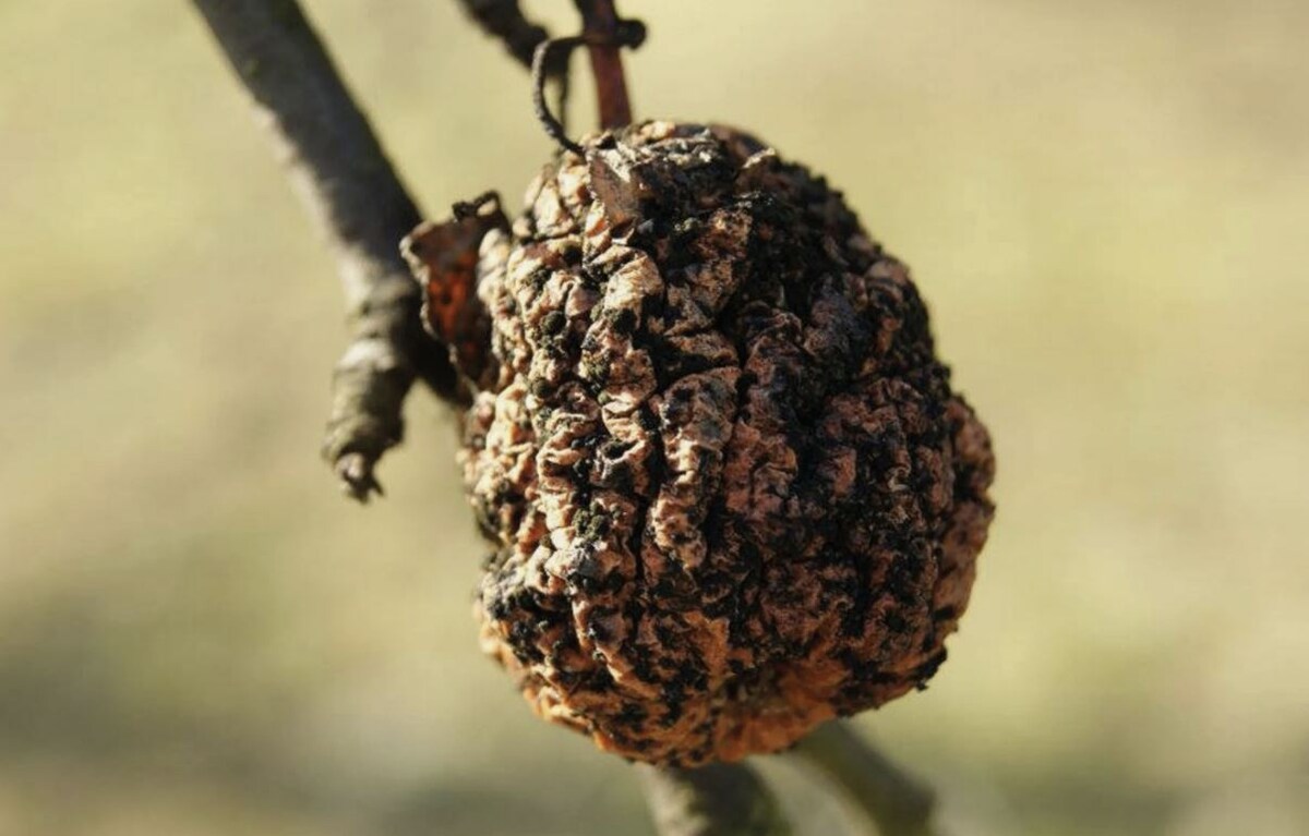 - Место для размножения грибка: мумифицированные плоды, оставшиеся на деревьях или под ними, становятся идеальной средой для зимовки спор грибка.