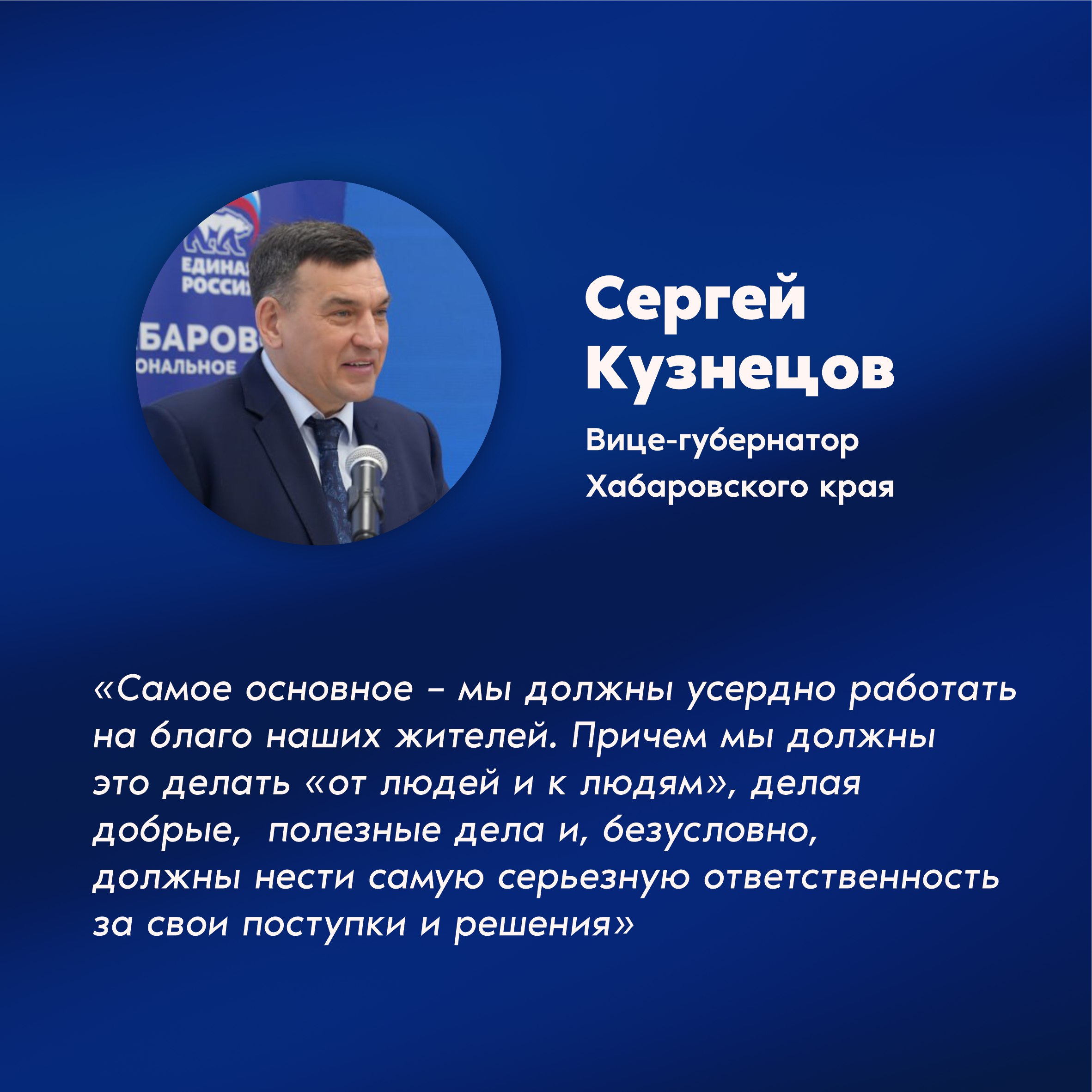 В состав Президиума регионального политсовета были включены вице-губернатор Хабаровского края Сергей Кузнецов, а также руководитель регионального штаба «Молодой Гвардии Единой России» Александр Федчишин.