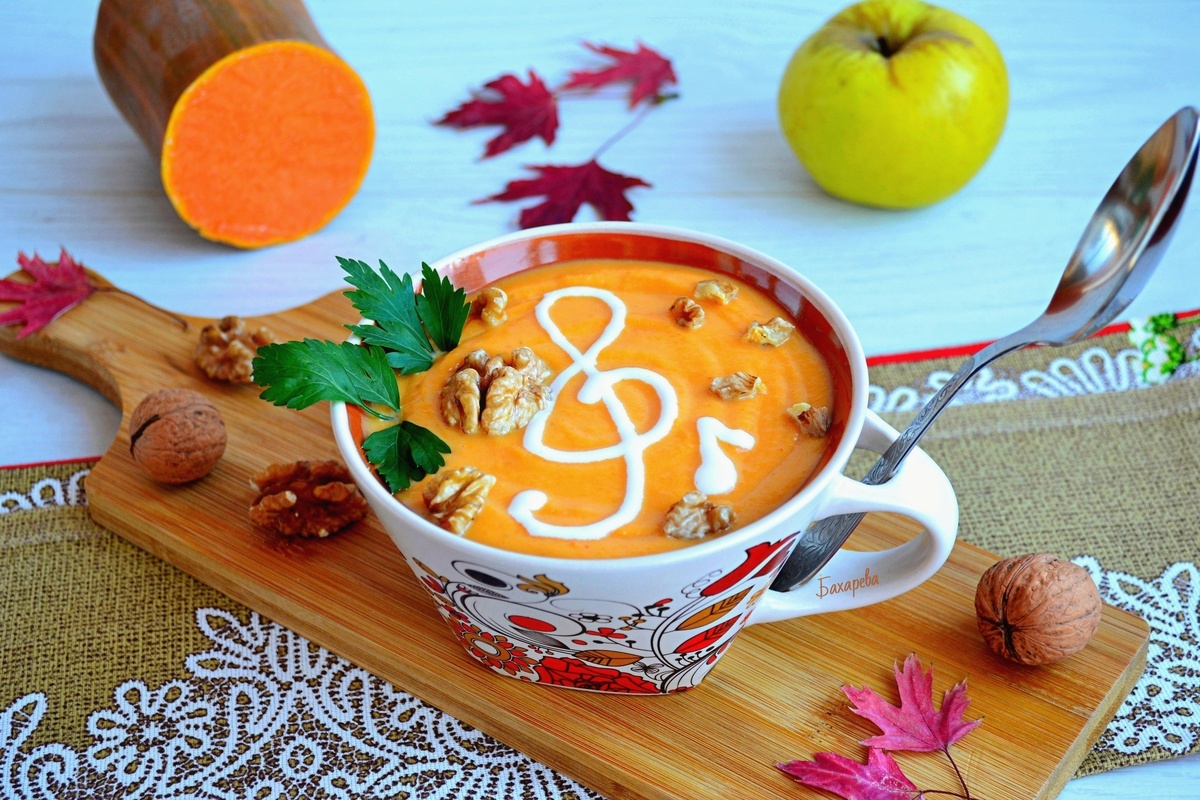Чтобы сделать блюдо еще более аппетитным, можно украсить суп орехами, петрушкой и ложечкой сметаны перед подачей на стол. Этот тыквенный суп подарит вам настоящее кулинарное наслаждение и станет ярким акцентом осеннего меню.