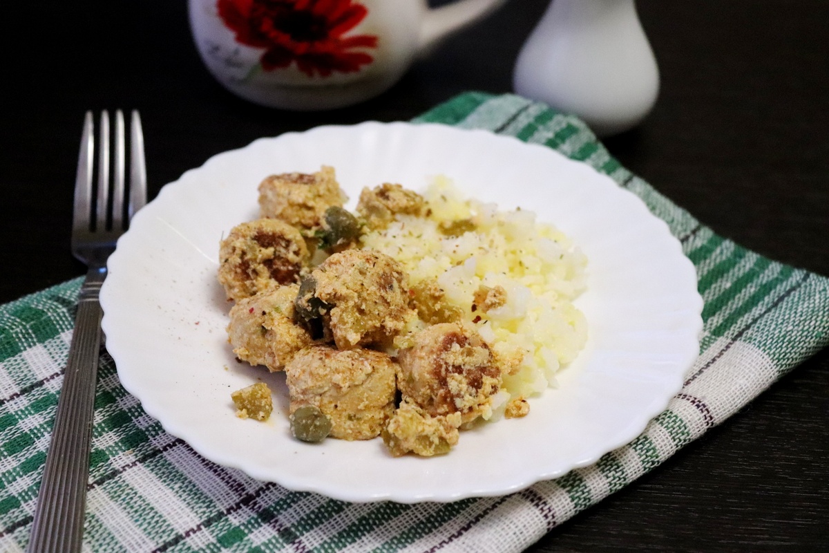 Когда фарш будет готов, следует формировать небольшие фрикадельки. Обжарить их на растительном масле до золотистой корочки. Затем, в сковороде с фрикадельками, влить сливки и добавить нарезанный на кубики маринованный огурец и каперсы. Хорошо перемешать и добавить вяленые томаты, которые также можно нарезать на небольшие кусочки. Тушить все вместе на малом огне примерно 15 минут, чтобы насладиться ароматами и объединить все вкусы.