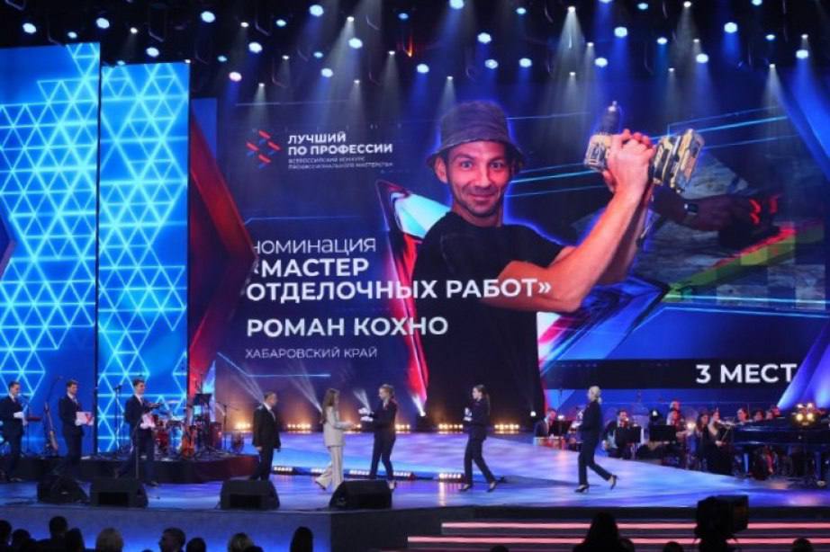 В Государственном Кремлевском дворце подвели итоги федерального этапа Всероссийского конкурса профессионального мастерства, который реализуется в рамках президентского нацпроекта «Кадры». В числе призеров конкурса – хабаровчанин Роман Кохно. Мастер отделочных работ занял третье место в своей номинации.