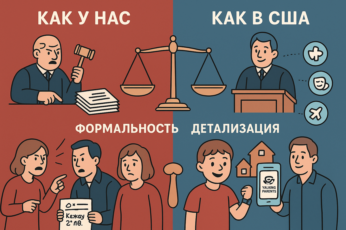Таким образом, система соглашений о детях в США значительно отличается от российской и может служить примером более внимательного и детализированного подхода к защите прав ребёнка и интересов родителей.