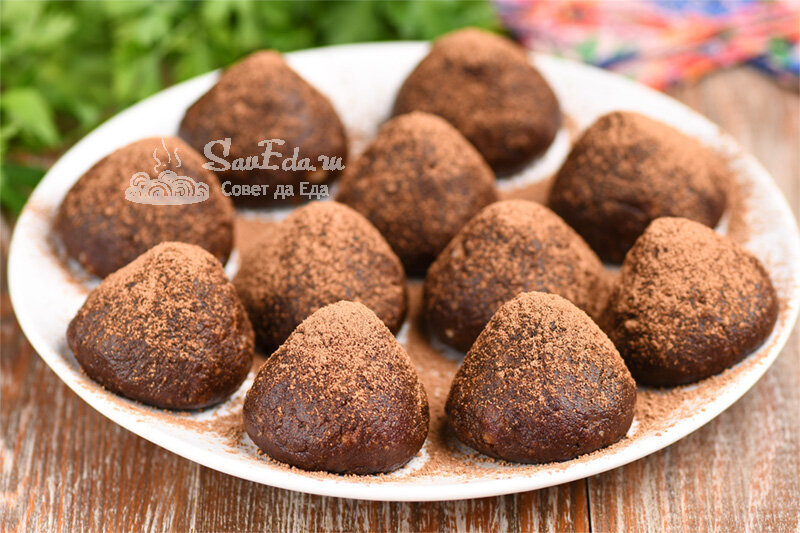 Начинайте с того, чтобы в небольшую кастрюлю добавить какао-порошок, сахар и крахмал. Хорошенько перемешайте все ингредиенты.Влейте молоко и добавьте сливочное масло. Поставьте кастрюлю на средний огонь и варите, постоянно помешивая, до получения однородной массы.После закипания продолжайте варить глазурь около одной минуты, потом снимите с огня и охладите.Пока глазурь остывает, измельчите грецкие орехи в блендере и добавьте их в охлажденную смесь.Измельчите сахарное печенье в крошку и постепенно добавляйте в шоколадную массу. Если хотите, можете использовать другие виды печенья или даже овсяные хлопья.Придайте полученной массе форму, скатывая из нее шарики или конусы. В итоге должно получиться около 450 г вкусного десерта.Заполненные формы посыпьте дополнительным какао и уберите в холодильник на 30 минут, чтобы десерт стал более плотным.Готовьте с удовольствием, делитесь пирожными с близкими и наслаждайтесь каждый раз новым вкусом!