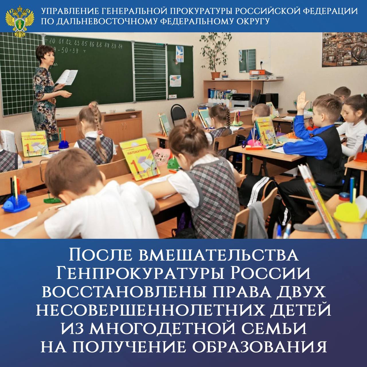 После вмешательства Генпрокуратуры России восстановлены права двух несовершеннолетних детей из многодетной семьи на получение образования