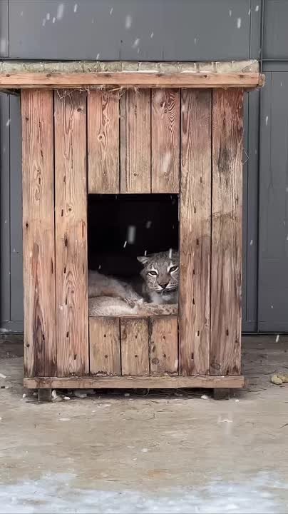 На улице снег, а хищникам все нипочем, ведь в их домике тепло и уютно.