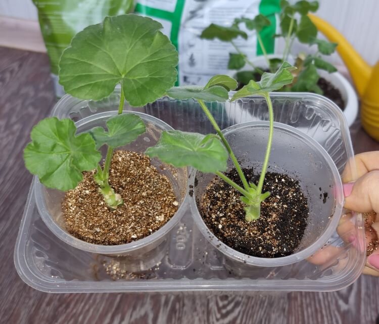 В начале ноября в рамках небольшого опыта два черенка пеларгонии были посажены в разные типы субстратов. Первый черенок укореняли в универсальной смеси для рассады с добавлением вермикулита, а второй — в чистом вермикулите. Условия размещения были одинаковыми, однако полив черенка в вермикулите был более частым из-за его способности быстро терять влагу. К тому же, в процессе не использовались стимуляторы корнеобразования.