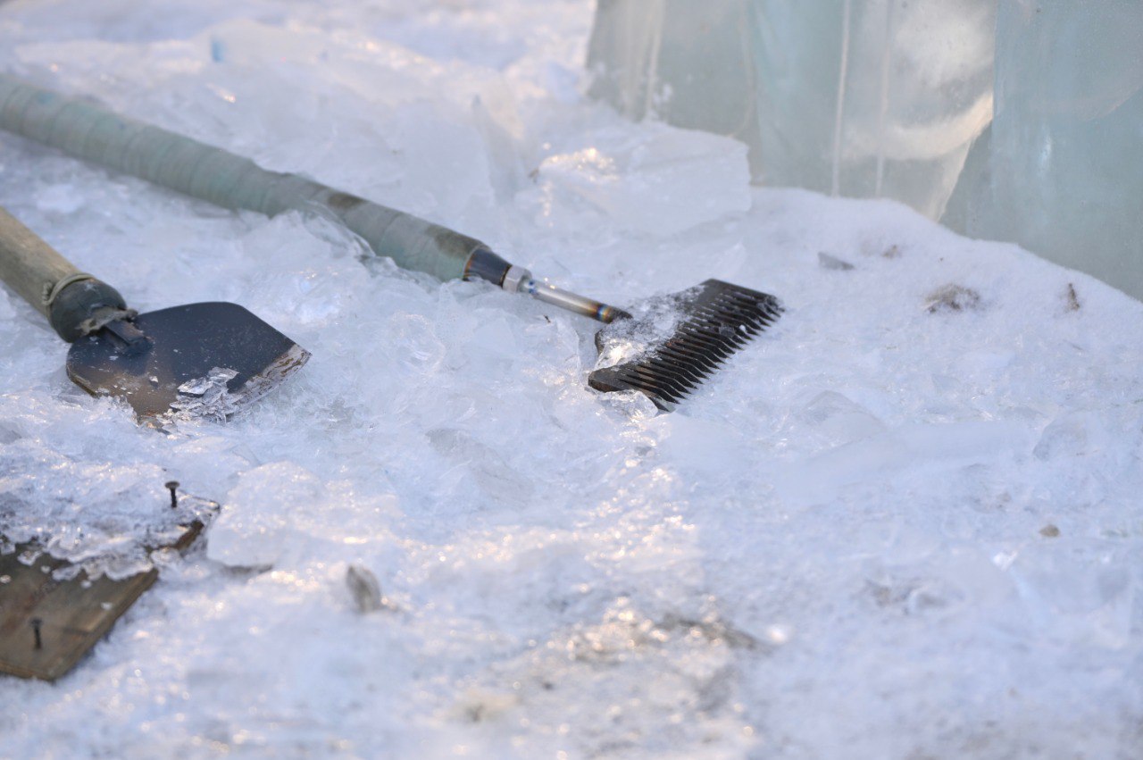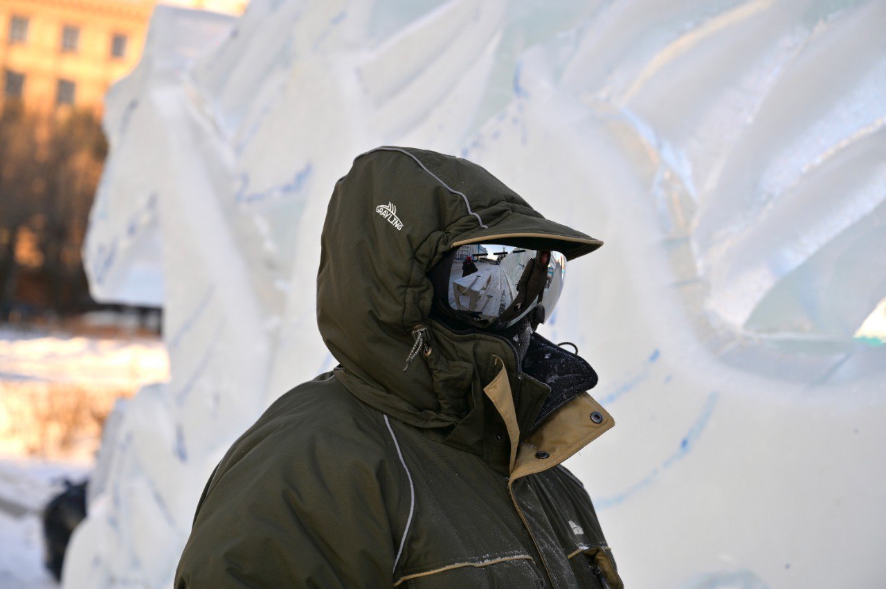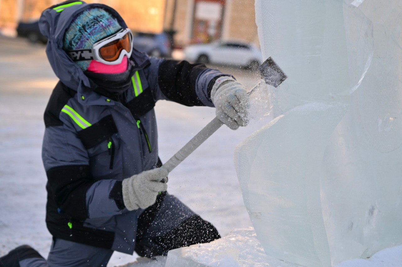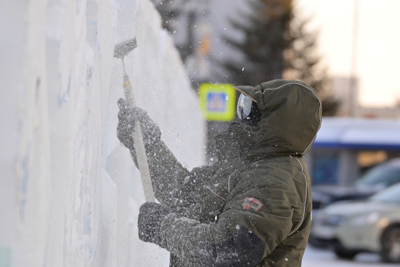 Над созданием композиций работают два ледовых скульптора. Мастера обещают завершить свои творения до конца этой недели.