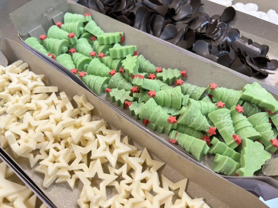 Как сообщили в пресс-службе правительства Хабаровского края, на кондитерской фабрике "Хабаровская" классические торты оформляют в новогоднем стиле: из шоколада делают звезды, шишки, елочные шары, которыми украшают торты. Объем производства тортов увеличился на 50%.На предприятии по производству крафтового шоколада ручной работы под брендом "Амурский бульвар" появились сладкие лошади, елочные игрушки, снеговики и подарочные наборы из шоколадных плиток и конфет. Производство к праздникам выросло в 3 раза.