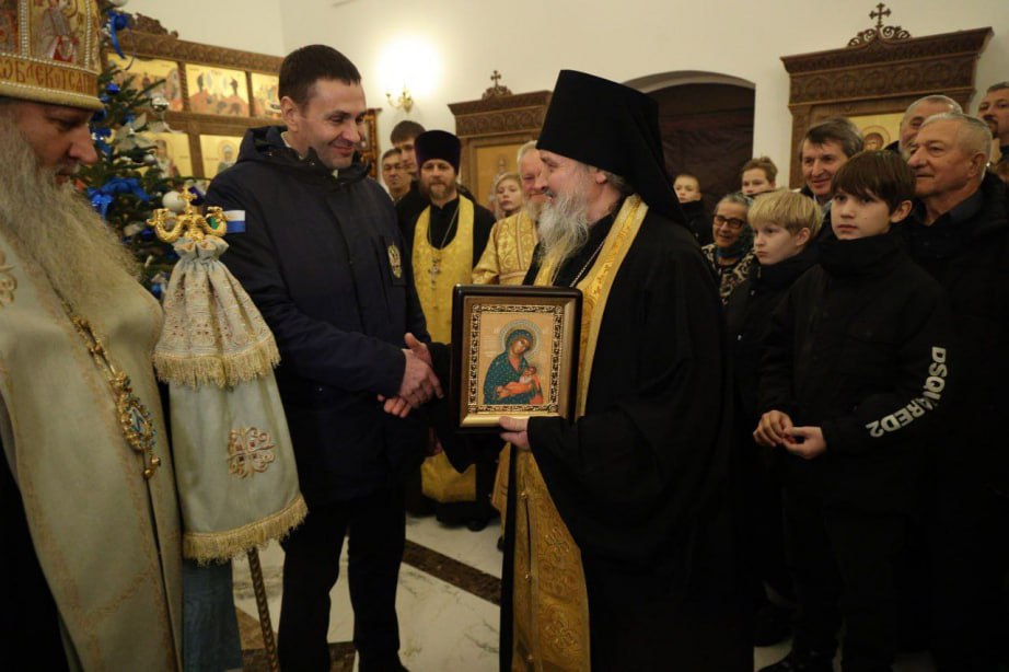 Губернатор вручил храму памятный подарок – икону Божией Матери «Блаженное Чрево – Хабаровская».