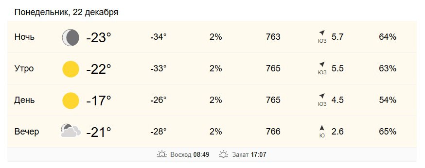 Доброе утро, Хабаровск! Отличного настроения в понедельник! Пусть день будет лёгким и продуктивным! 22 декабря.Температурный фон в течение дня в пределах от -23 до -17, ночью от -23 до -21°. Ожидается легкий бриз, 5 м/с, порывами до 11 м/с. Погода...