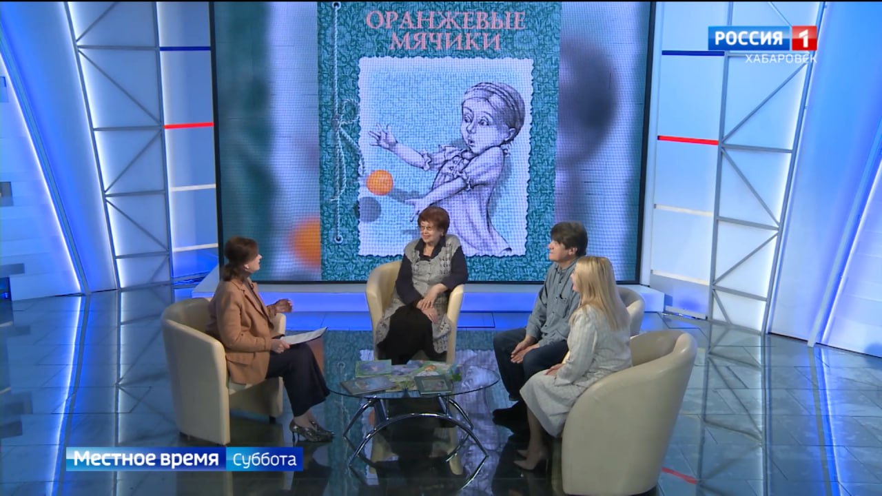 Гости студии – член Союза писателей РФ Елена Неменко, Заслуженный художник Хабаровского края Андрей Тен и директор краевой детской библиотеки им. Н.Д. Наволочкина Раиса Наумова.