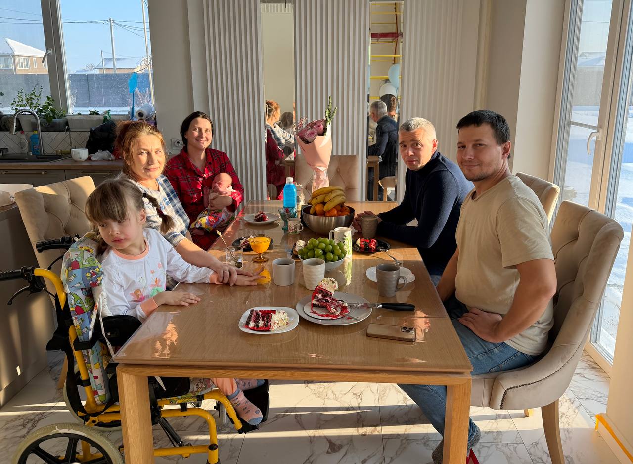 После вручения подарка министра пригласили к семейному столу на чай. В неформальной обстановке он пообщался с родителями Полины, узнал о том, чем живёт семья, и ответил на волнующие их вопросы.