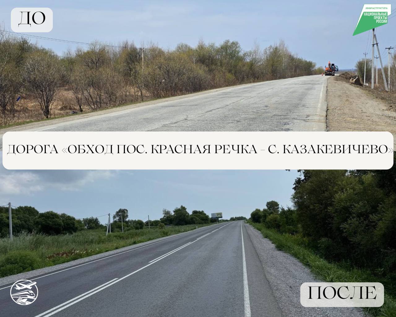 Одним из социально значимых объектов в 2025 году в Хабаровском районе стал участок региональной автодороги «Обход посёлка Красная Речка – село Казакевичево». Ремонт охватил четырехкилометровый участок с 3 по 7 км. Эта дорога соединяет Хабаровск и несколько населённых пунктов с туристической зоной «Заимка» — популярным местом зимнего отдыха, особенно востребованным в дни новогодних праздников.