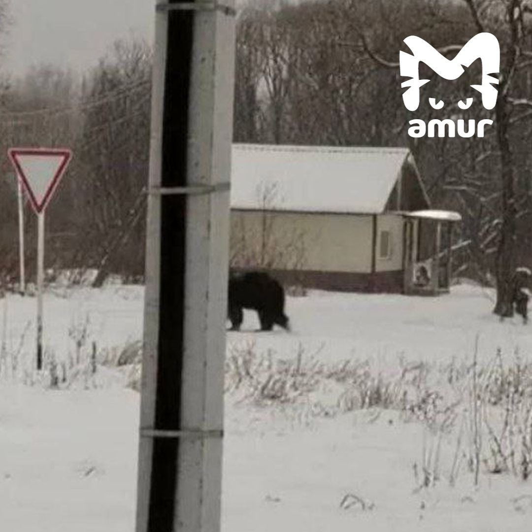 Раненый медведь-шатун бродит по посёлку Хабаровского края.