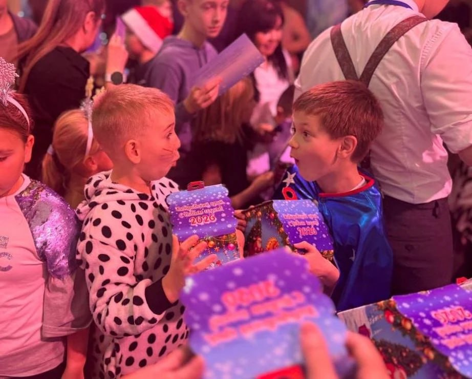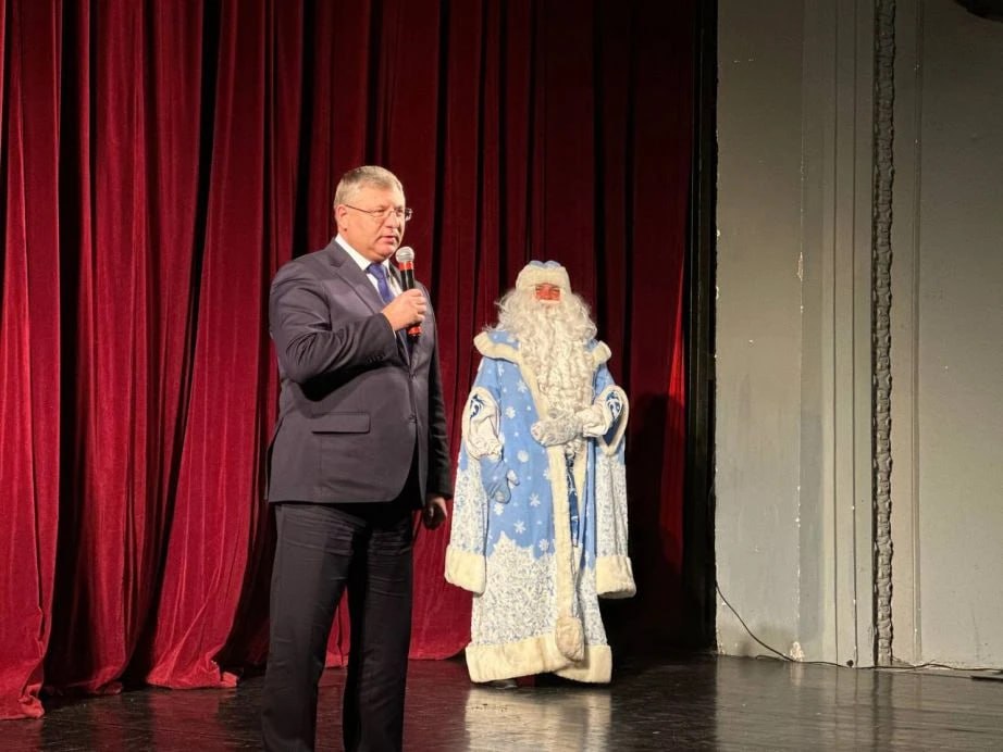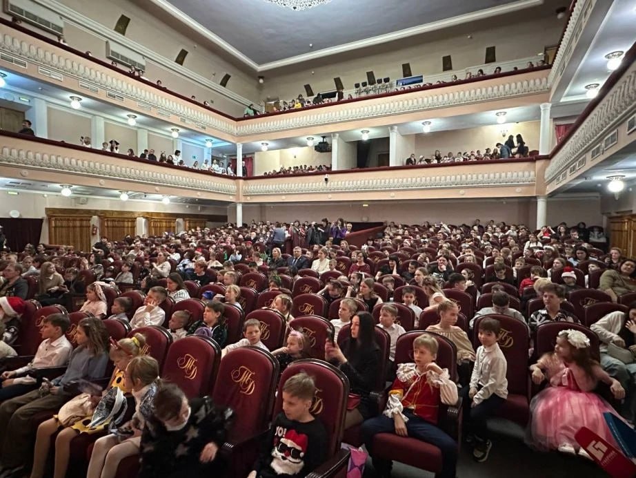 Более 800 ребят увидели спектакль, водили хоровод и получили сладкие подарки с открыткой от главы региона Дмитрия Демешина.