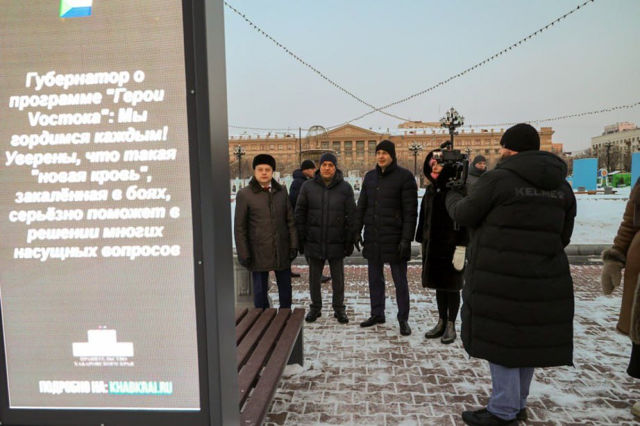«Накануне зимних праздников мы постарались сделать главную площадь края ещё комфортнее для хабаровчан и гостей города. На этих скамейках не просто удобно отдыхать – они позволяют быть в курсе событий края», – отметил Дмитрий Демешин.