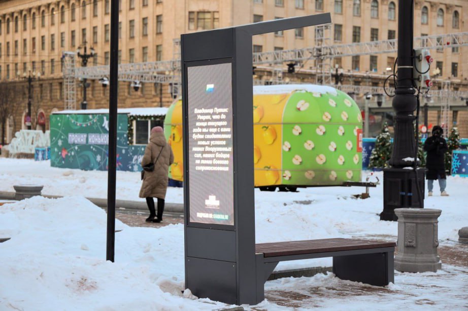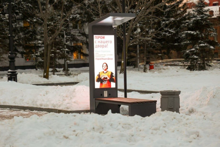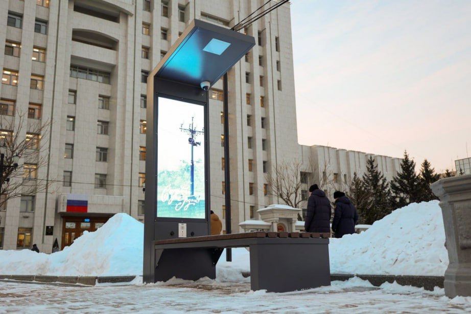 В Хабаровске на главной площади края установлены 10 современных мультимедийных скамеек. Они оснащены светодиодными экранами для трансляции социальной рекламы, новостей и анонсов событий, а также USB-разъёмами и беспроводными зарядками для гаджетов.