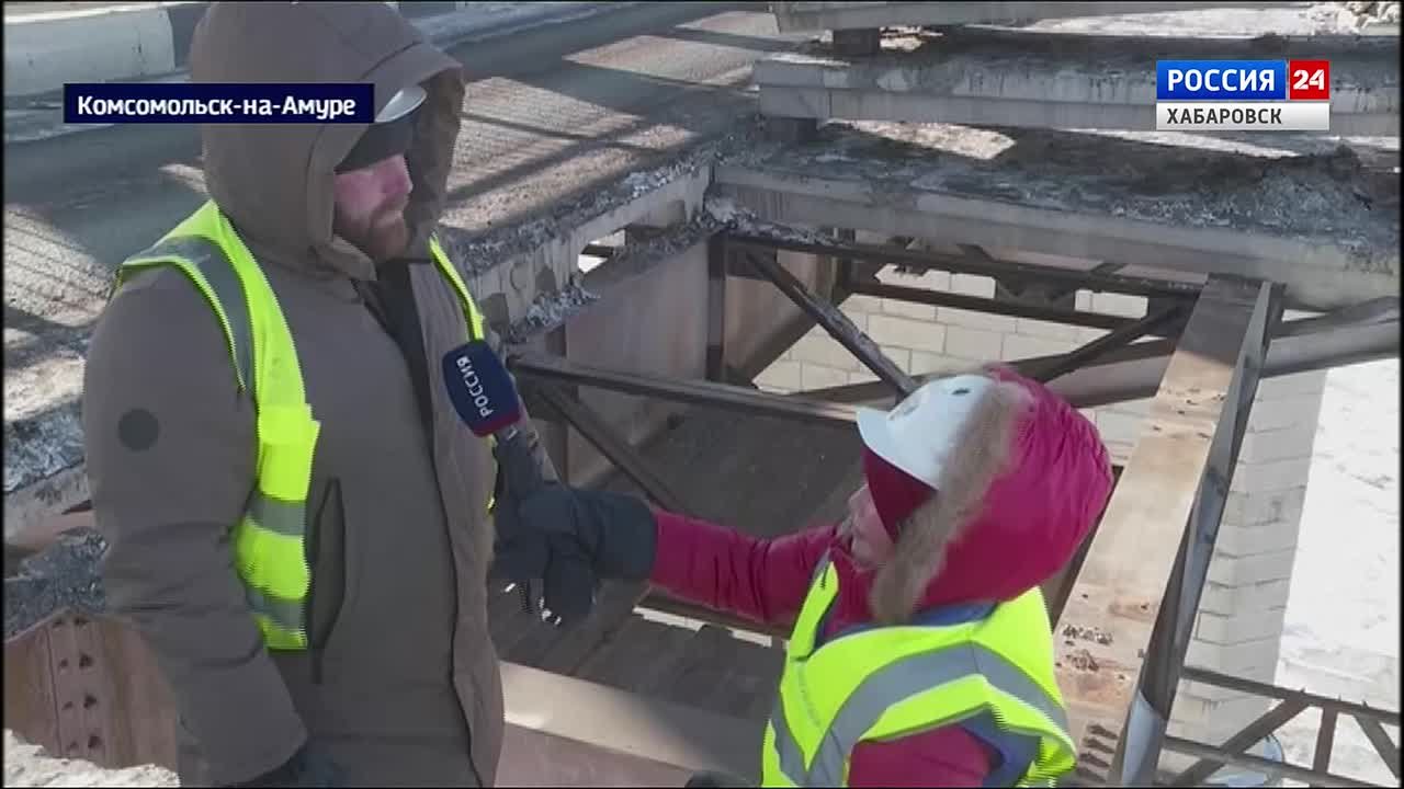 Реконструируемый в рамках нацпроекта автомобильный переход у Комсомольска – один из ключевых объектов транспортной инфраструктуры в Хабаровском крае. Полностью перекрыть движение там невозможно. Работы продолжаются и в крепкие морозы. Людмила Смирнова на себе испытала, каково это.