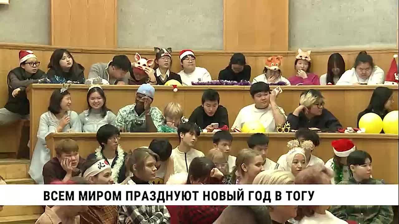 Молодёжь из Конго, Южной Кореи, Пакистана и Китая знакомятся с русскими новогодними традициями. Иностранные студенты ТОГУ погружаются в культуру народных сказок, учат песни и стихи наших классиков в праздничной атмосфере. Сами они знакомят дальневосточных однокурсников с новогодними ритуалами своих стран. Наша съёмочная группа побывала на международном студенческом утреннике в вузе.
