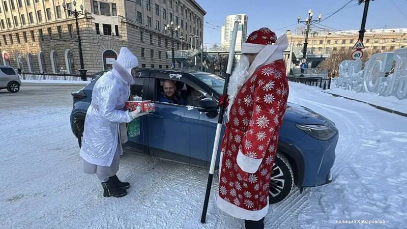 Дед Мороз и Снегурочка – на страже дорог Хабаровского края